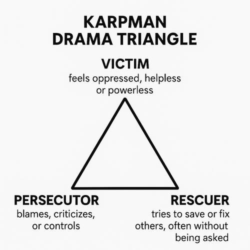 The Karpman Drama Triangle is a psychological and social model that maps three dysfunctional roles people often take in conflict: